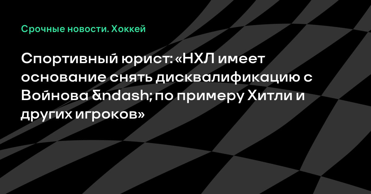 Спортивный юрист: «НХЛ имеет основание снять дисквалификацию с Войнова – по примеру Хитли и других игроков»