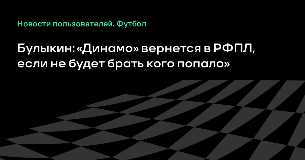 Булыкин: «Динамо» вернется в РФПЛ, если не будет брать кого попало»