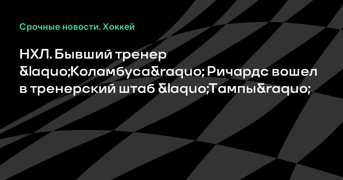 НХЛ. Бывший тренер «Коламбуса» Ричардс вошел в тренерский штаб «Тампы»