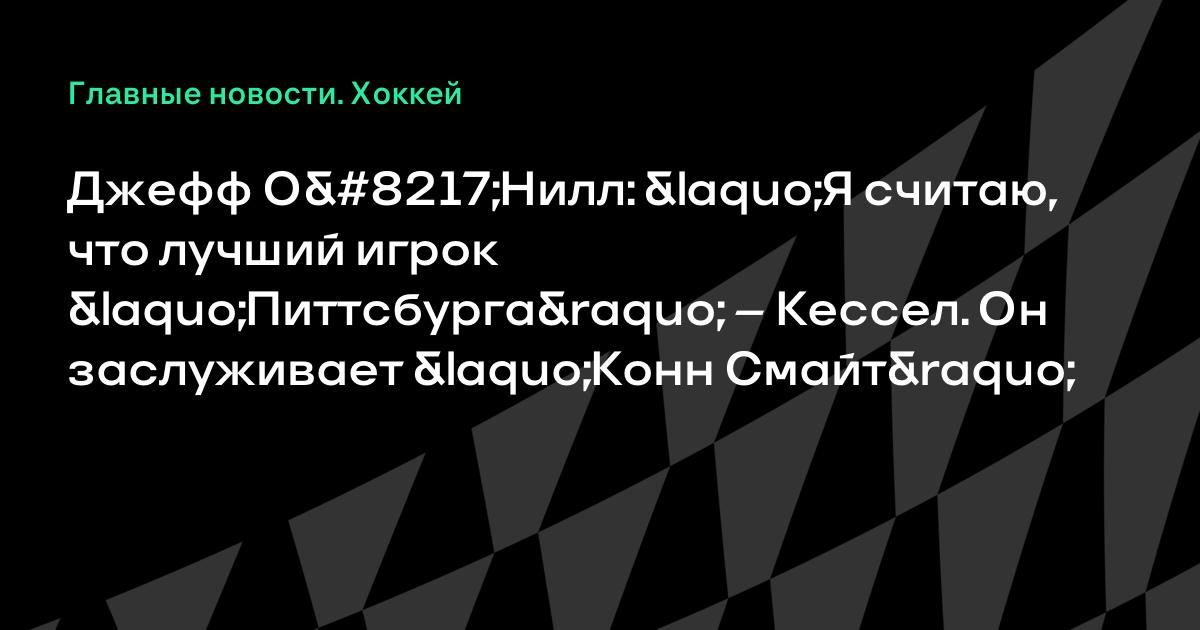 Джефф О’Нилл: «Я считаю, что лучший игрок «Питтсбурга» – Кессел. Он заслуживает «Конн Смайт»