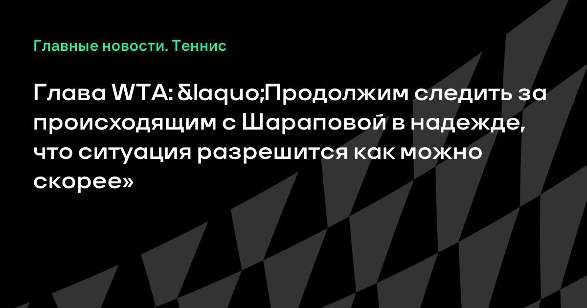 Глава WTA: «Продолжим следить за происходящим с Шараповой в надежде, что ситуация разрешится как можно скорее»
