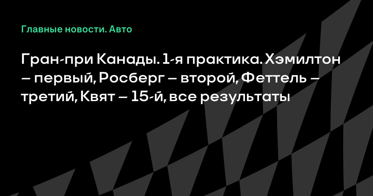 Гран-при Канады. 1-я практика. Хэмилтон – первый, Росберг – второй, Феттель – третий, Квят – 15-й, все результаты