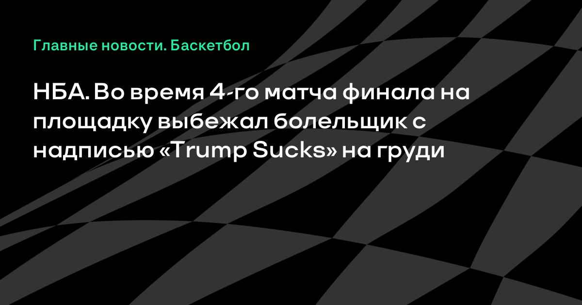 НБА. Во время 4-го матча финала на площадку выбежал болельщик с надписью «Trump Sucks» на груди