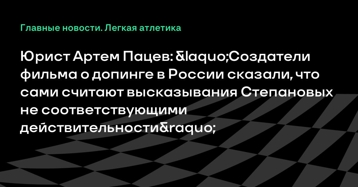 Юрист Артем Пацев: «Создатели фильма о допинге в России сказали, что сами считают высказывания Степановых не соответствующими действительности»