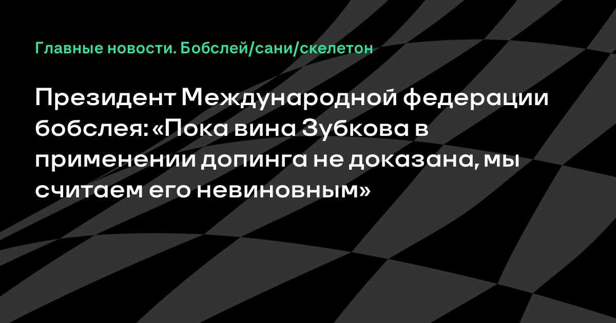 Президент Международной федерации бобслея: «Пока вина Зубкова в применении допинга не доказана, мы считаем его невиновным»