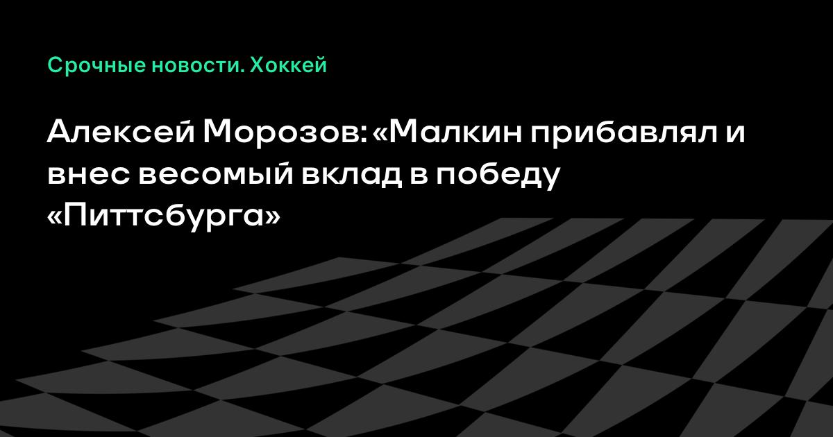 Алексей Морозов: «Малкин прибавлял и внес весомый вклад в победу «Питтсбурга»