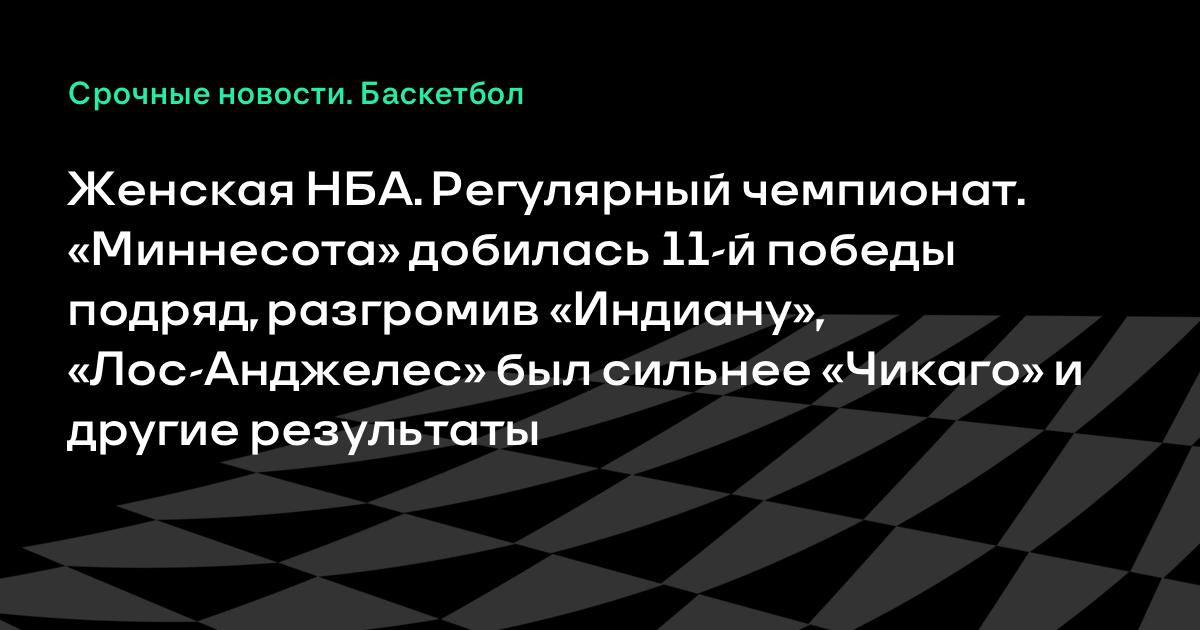 Женская НБА. Регулярный чемпионат. «Миннесота» добилась 11-й победы подряд, разгромив «Индиану», «Лос-Анджелес» был сильнее «Чикаго» и другие результаты