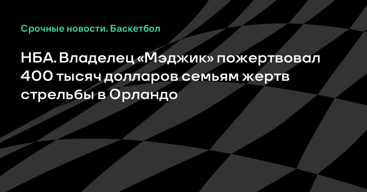 НБА. Владелец «Мэджик» пожертвовал 400 тысяч долларов семьям жертв стрельбы в Орландо