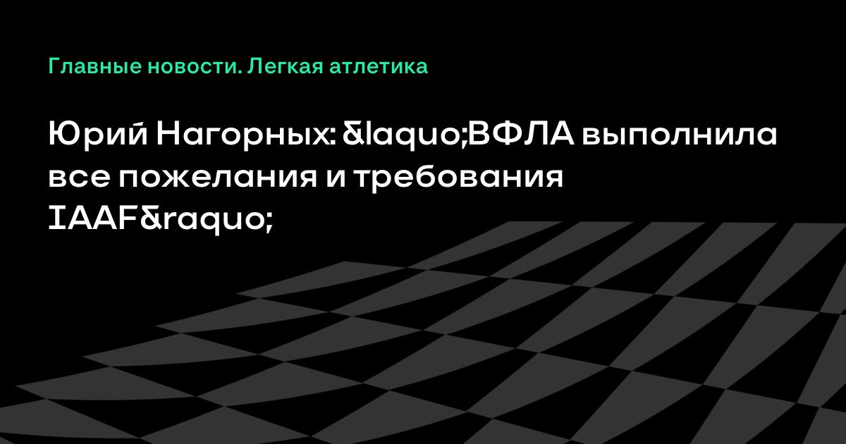 Заместитель министра спорта России Юрий Нагорных сообщил, что Всероссийская федерация легкой атлетики (ВФЛА) выполнила все требования Международной ассоциации легкоатлетических федераций (IAAF) для восстановления в своих правах.