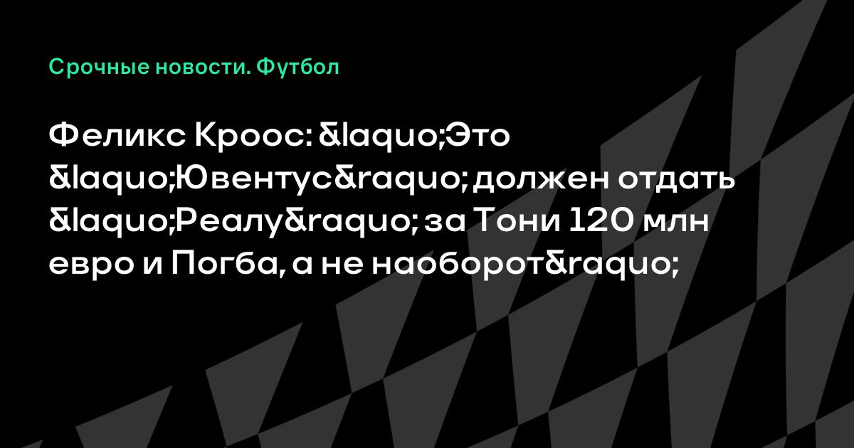 Феликс Кроос: «Это «Ювентус» должен отдать «Реалу» за Тони 120 млн евро и Погба, а не наоборот»