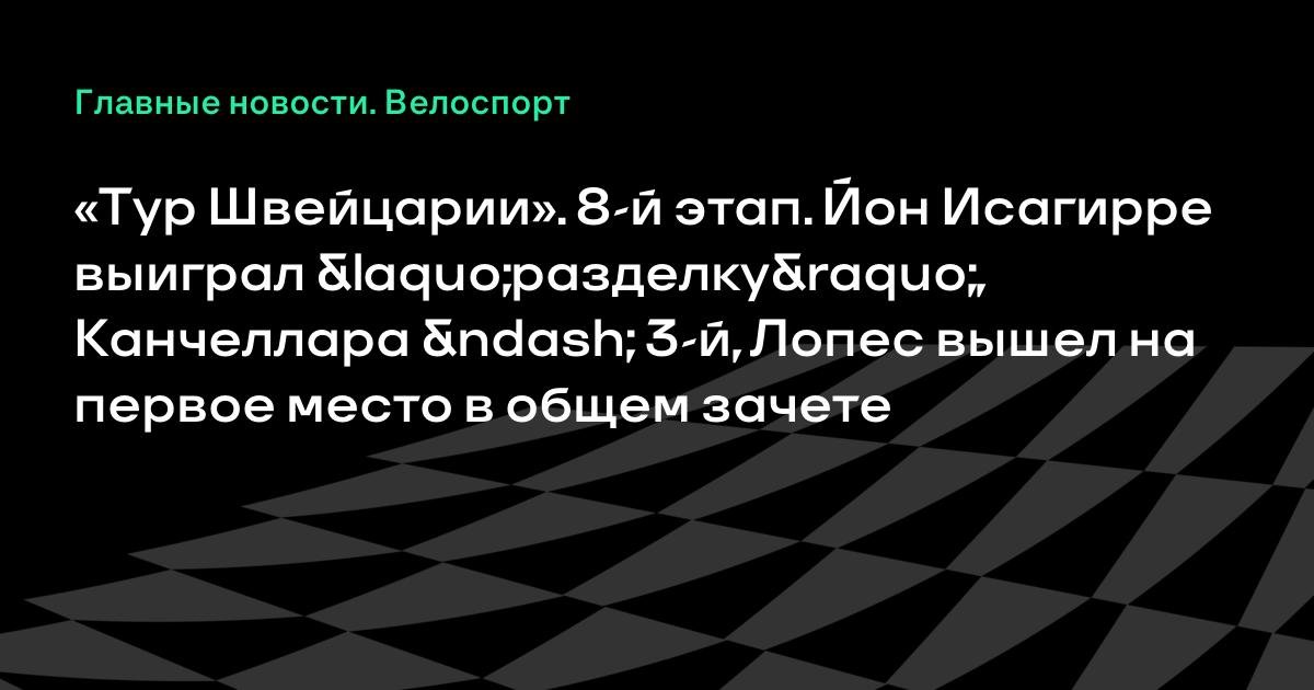 «Тур Швейцарии». 8-й этап. Йон Исагирре выиграл «разделку», Канчеллара – 3-й, Лопес вышел на первое место в общем зачете