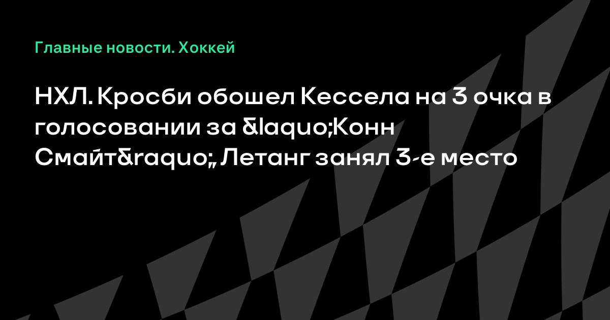 НХЛ. Кросби обошел Кессела на 3 очка в голосовании за «Конн Смайт», Летанг занял 3-е место