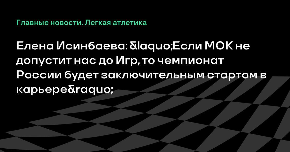 «Летим на чемпионат России в Чебоксары! Буду выступать 20-го и, скорее всего, 21 июня. Буду очень рада, если свободных мест на стадионе не будет, ведь по сути, если нас не допустит и МОК до участия в Играх, это будет мой заключительный старт в карьере. До встречи на стадионе», – написала Исинбаева.