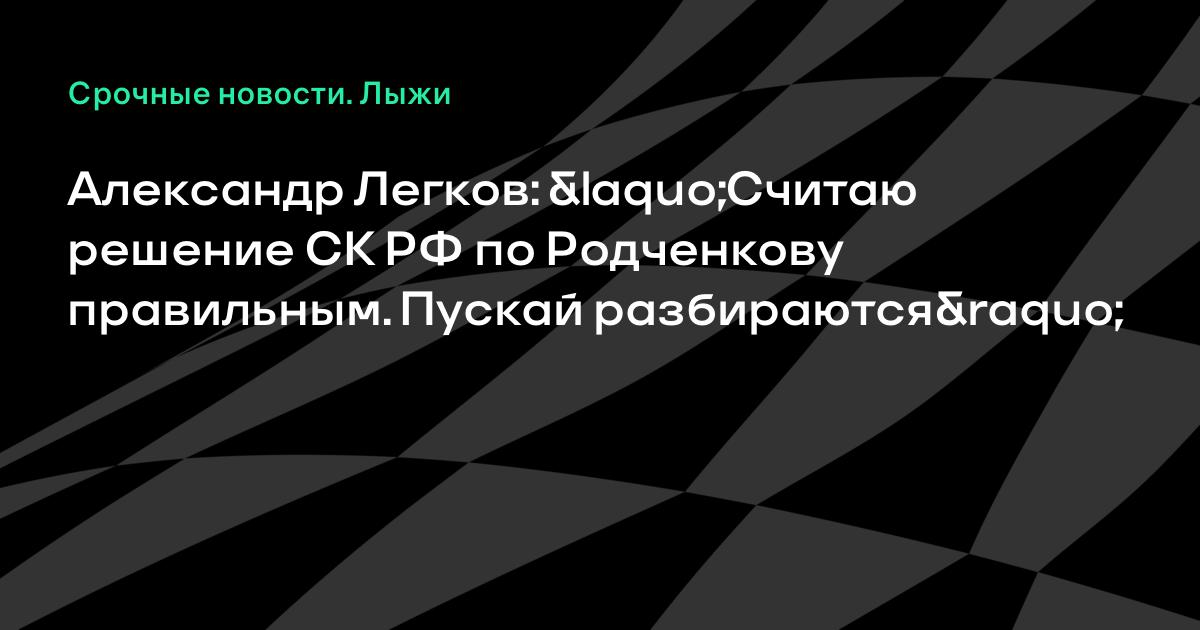 Александр Легков: «Считаю решение СК РФ по Родченкову правильным. Пускай разбираются»