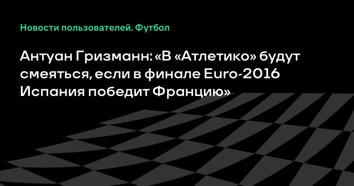 - Готов сыграть в финале чемпионата Европы-2016 со сборной Испании, — говорит Гризманн. — Но мы будем должны победить, потому что в «Атлетико» будут смеяться надо мной, если Франция проиграет. Мы должны побеждать, несмотря на то, какие соперники попадутся нам на пути к финалу.