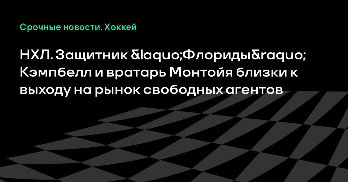 НХЛ. Защитник «Флориды» Кэмпбелл и вратарь Монтойя близки к выходу на рынок свободных агентов