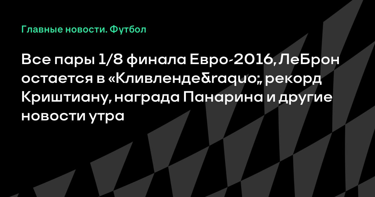 Все пары 1/8 финала Евро-2016, ЛеБрон остается в «Кливленде», рекорд Криштиану, награда Панарина и другие новости утра