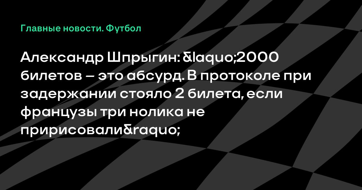 Александр Шпрыгин: «2000 билетов – это абсурд. В протоколе при задержании стояло 2 билета, если французы три нолика не пририсовали»