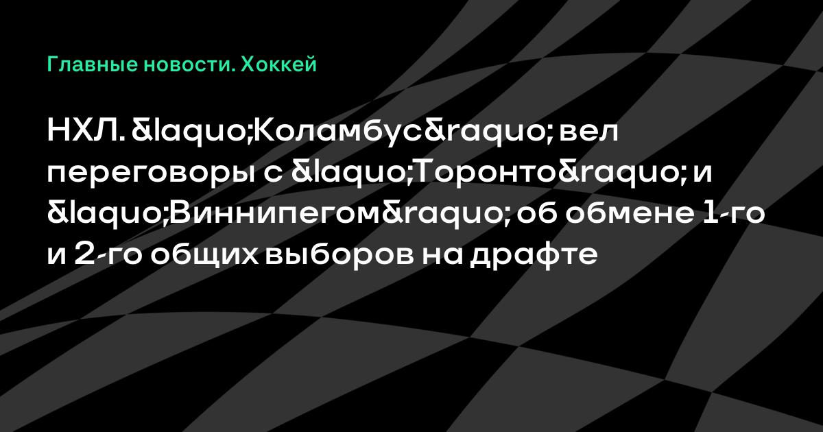 НХЛ. «Коламбус» вел переговоры с «Торонто» и «Виннипегом» об обмене 1-го и 2-го общих выборов на драфте