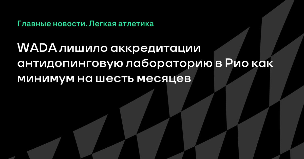 Всемирное антидопинговое агентство (WADA) сообщило, что работа антидопинговой лаборатории в Рио-де-Жанейро приостановлена на шесть месяцев.