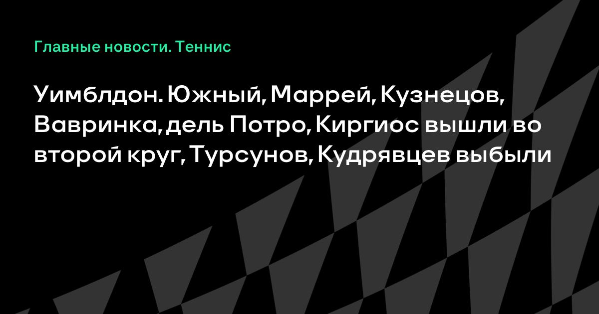 Уимблдон. Южный, Маррей, Кузнецов, Вавринка, дель Потро, Киргиос вышли во второй круг, Турсунов, Кудрявцев выбыли