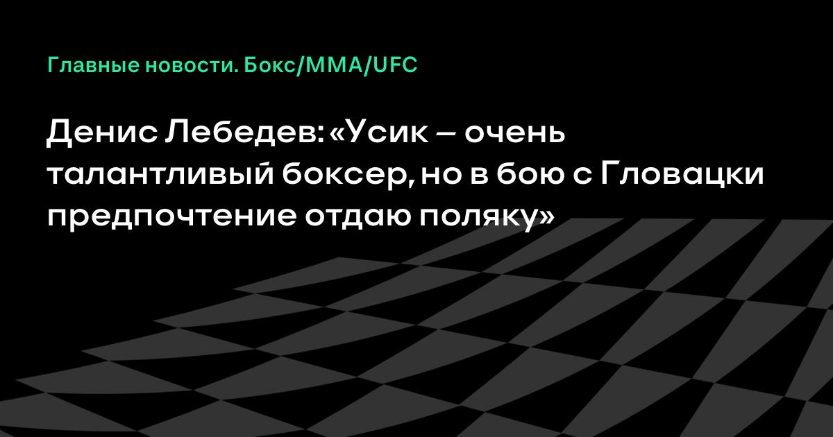 Обладатель титулов WBA и IBF в первом тяжёлом весе россиянин Денис Лебедев поделился мнением о предстоящем поединке между чемпионом WBO в его категории поляком Кшиштофом Гловацки и претендентом из Украины Александром Усиком, который состоится 17 сентября в Польше.