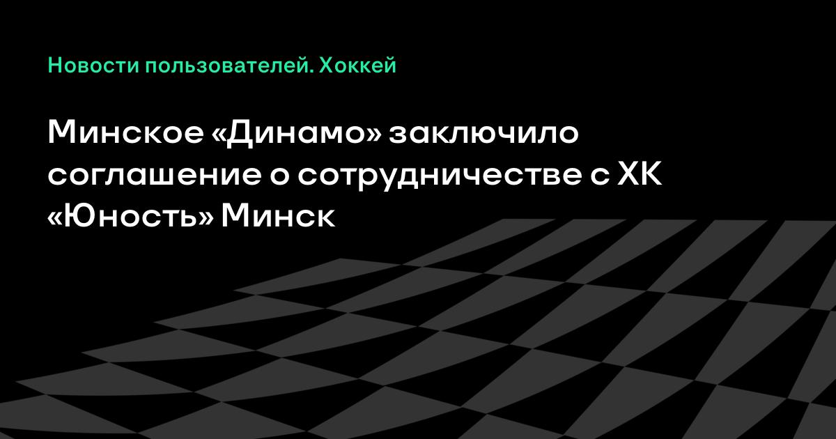 Минское «Динамо» заключило соглашение о сотрудничестве с ХК «Юность» (Минск), выступающим в чемпионате Беларуси.