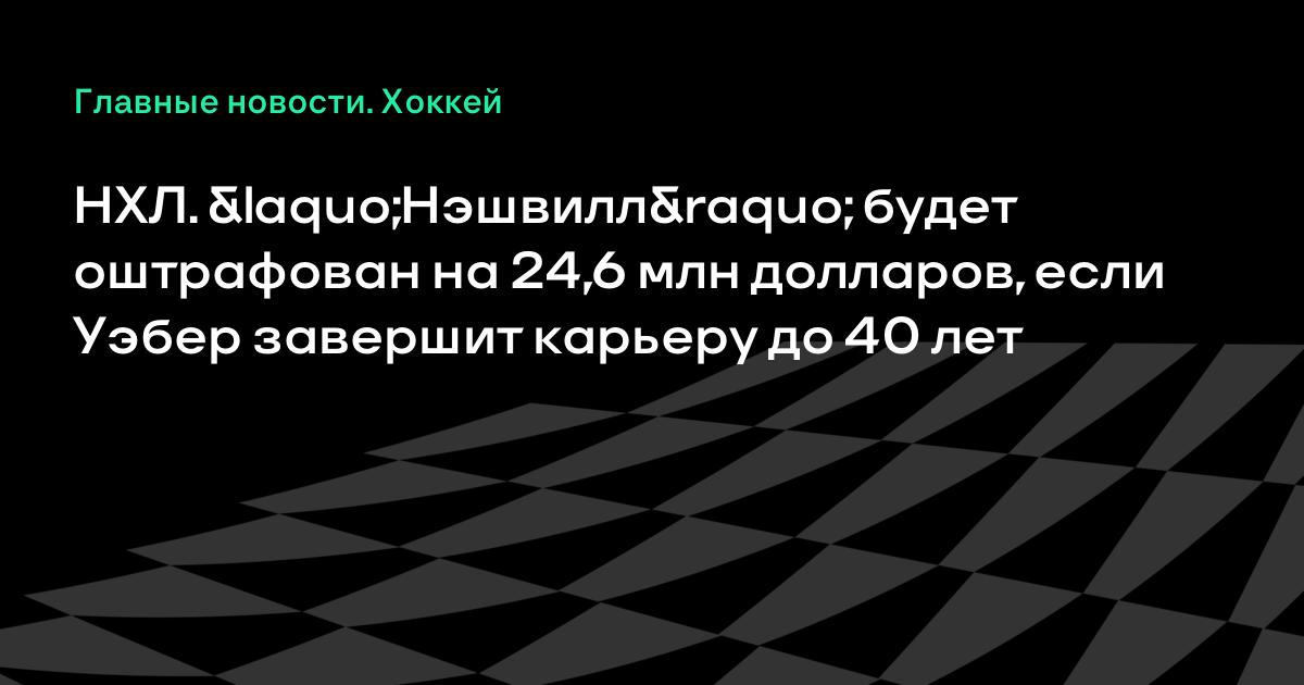 НХЛ. «Нэшвилл» будет оштрафован на 24,6 млн долларов, если Уэбер завершит карьеру до 40 лет