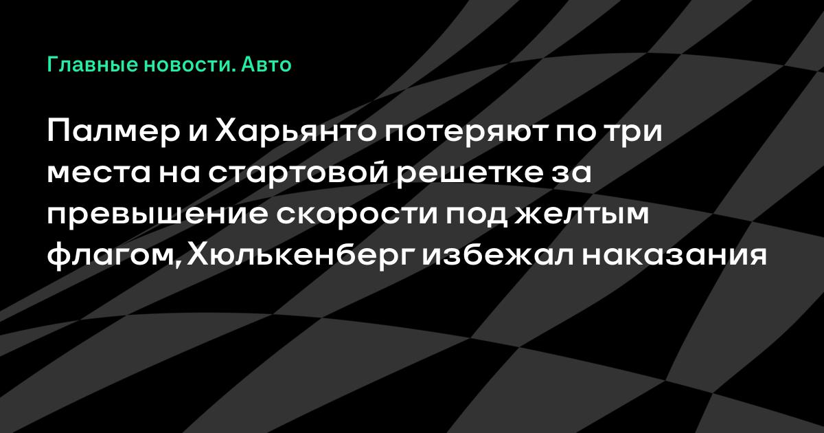 Палмер и Харьянто потеряют по три места на стартовой решетке за превышение скорости под желтым флагом, Хюлькенберг избежал наказания
