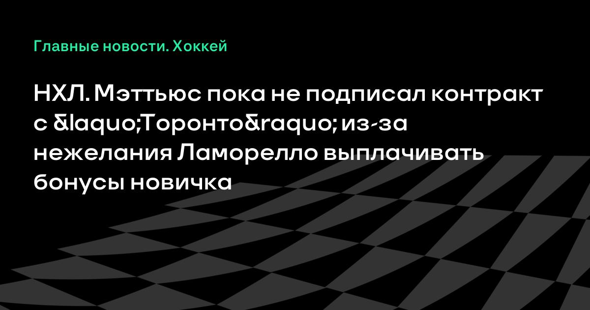 НХЛ. Мэттьюс пока не подписал контракт с «Торонто» из-за нежелания Ламорелло выплачивать бонусы новичка