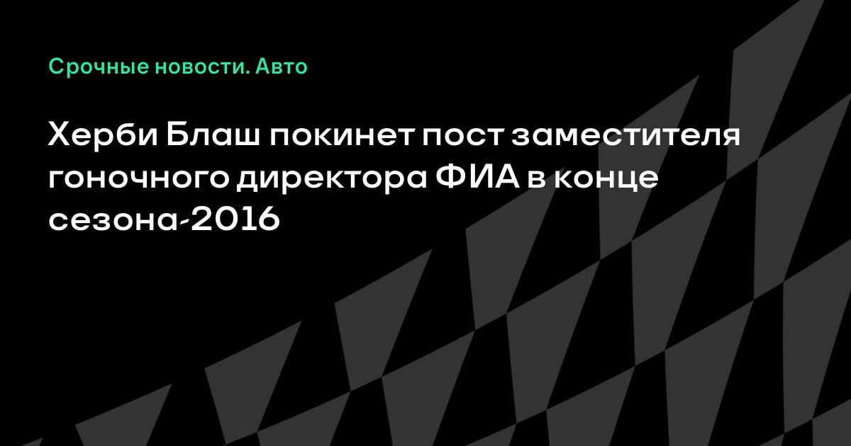 ФИА официально объявила о том, что Херби Блаш покинет пост заместителя гоночного директора Федерации в конце сезона-2016. Блаш работал в «Формуле-1» на разных должностях с 1965 года. Должность заместителя гоночного директора ФИА Блаш занимал последние двадцать лет.