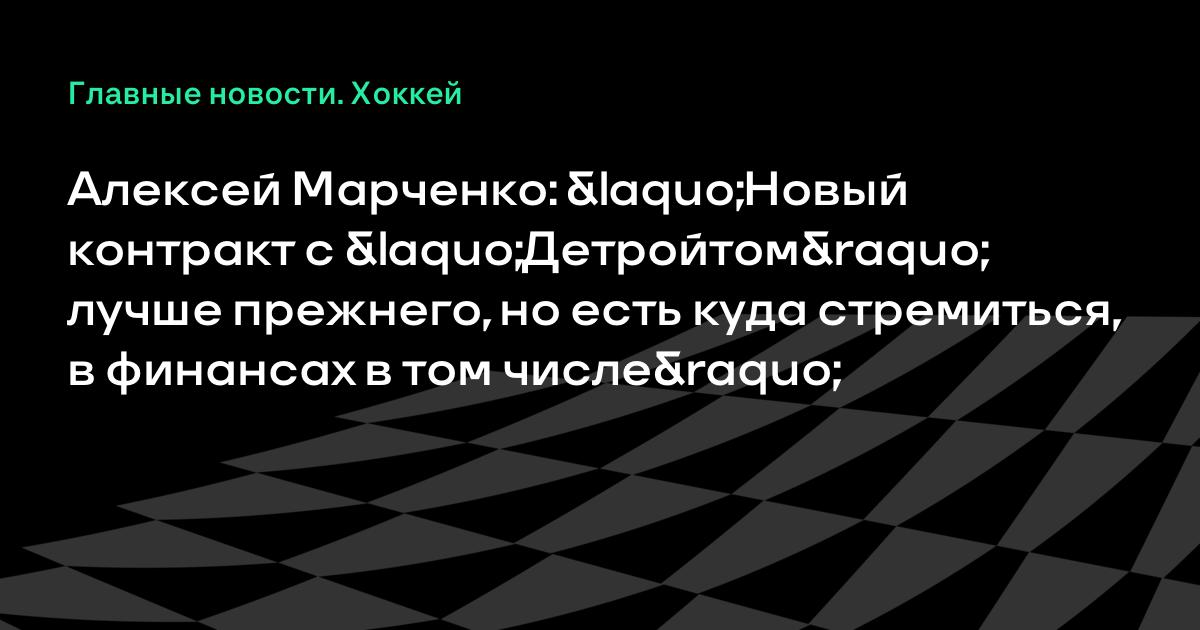 Алексей Марченко: «Новый контракт с «Детройтом» лучше прежнего, но есть куда стремиться, в финансах в том числе»