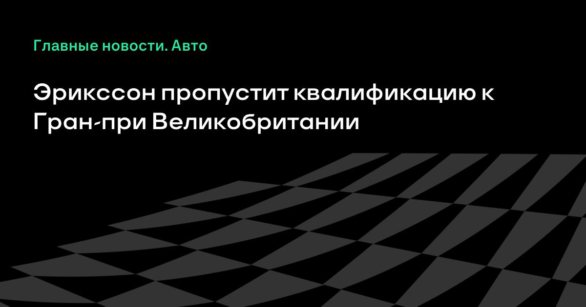 Пилот «Заубера» Маркус Эрикссон не примет участие в квалификации к Гран-при Великобритании, сообщает пресс-служба команды.