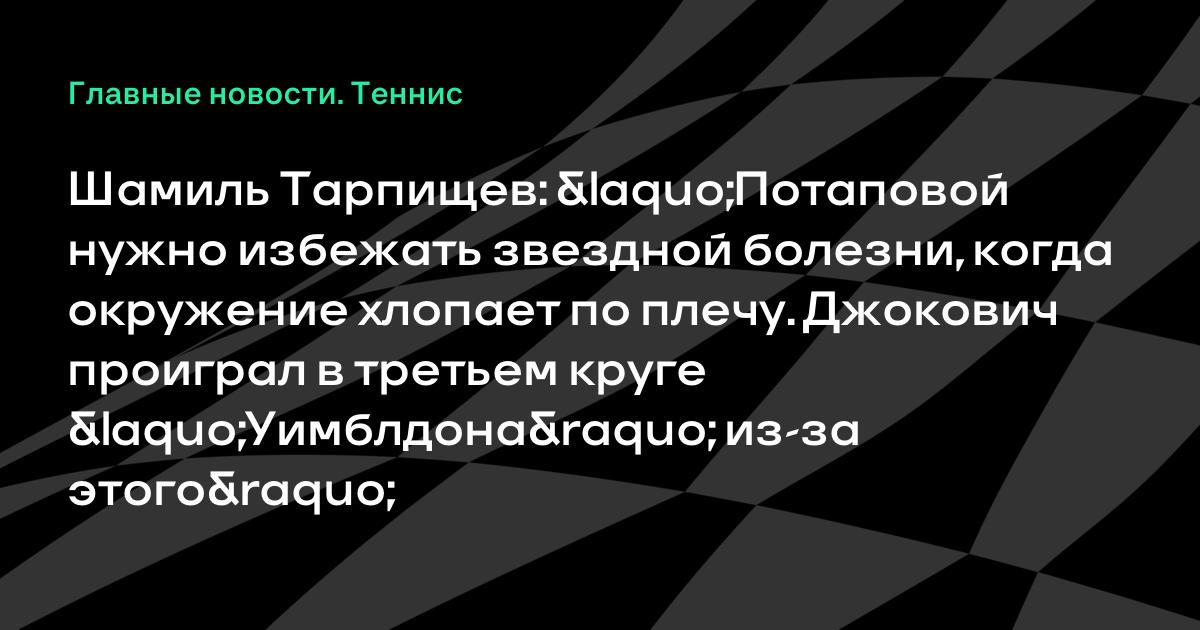 Будущее всегда зависит от того, как спортсмен работает. Нужно избежать звездной болезни, когда окружение хлопает по плечу, когда к тебе повышенное внимание. Среда всегда влияет. Вот, к примеру, Джокович проиграл в третьем круге «Уимблдона» из-за этого. Из-за самонадеянности и «размытого» состояния в связи с большим количеством побед в последнее время», – приводит слова Тарпищева «Р-Спорт».
