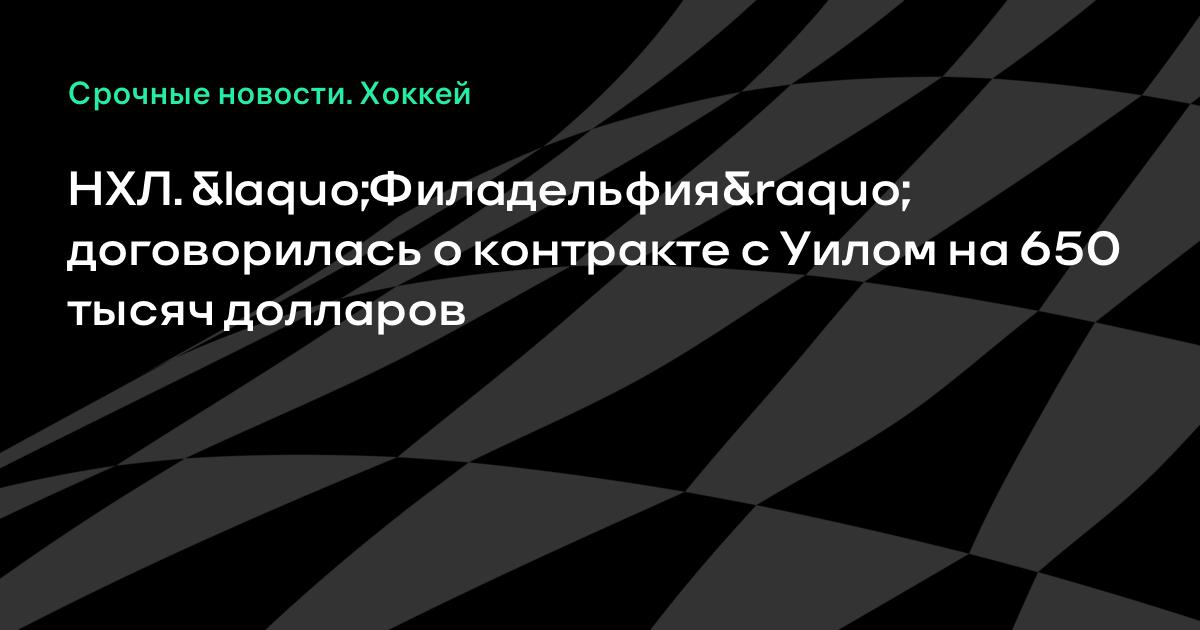 НХЛ. «Филадельфия» договорилась о контракте с Уилом на 650 тысяч долларов