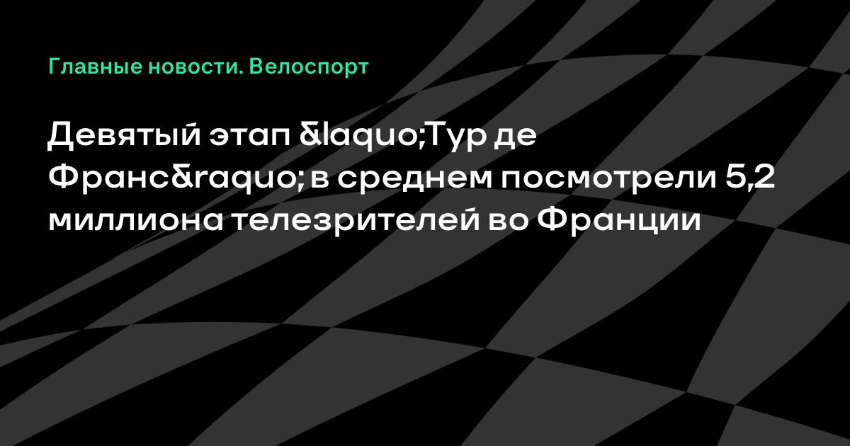 Девятый этап «Тур де Франс» в среднем посмотрели 5,2 миллиона телезрителей во Франции