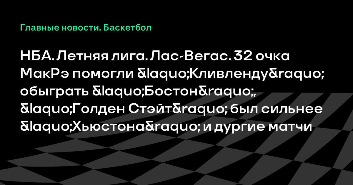 НБА. Летняя лига. Лас-Вегас. 32 очка МакРэ помогли «Кливленду» обыграть «Бостон», «Голден Стэйт» был сильнее «Хьюстона» и дургие матчи