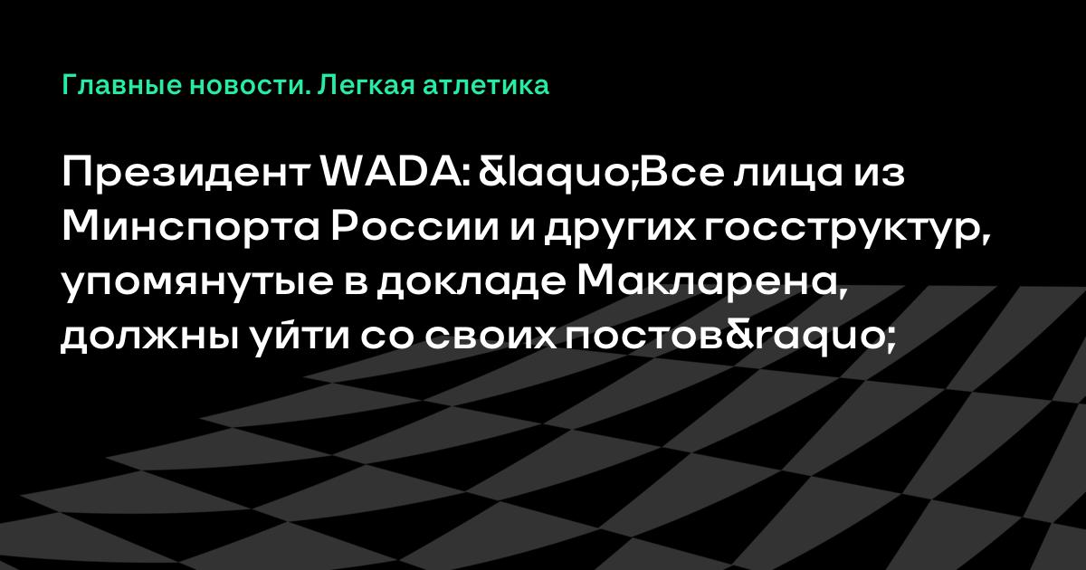 Президент WADA: «Все лица из Минспорта России и других госструктур, упомянутые в докладе Макларена, должны уйти со своих постов»