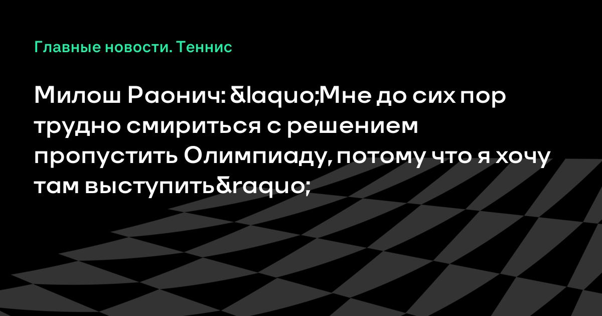 Милош Раонич: «Мне до сих пор трудно смириться с решением пропустить Олимпиаду, потому что я хочу там выступить»