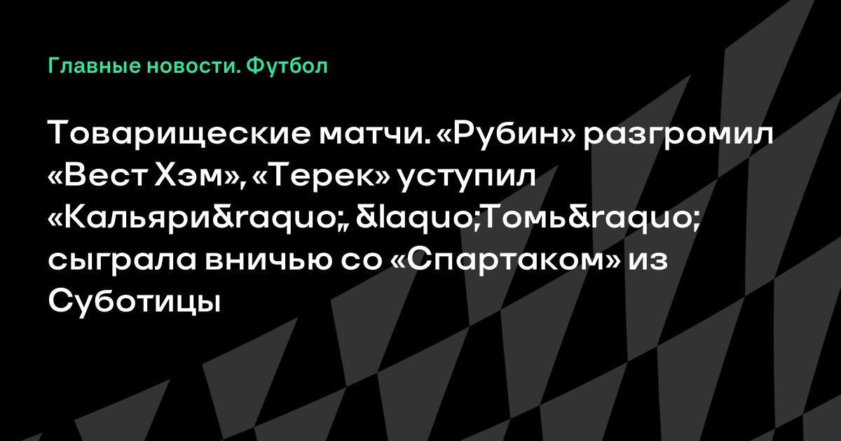 Товарищеские матчи. «Рубин» разгромил «Вест Хэм», «Терек» уступил «Кальяри», «Томь» сыграла вничью со «Спартаком» из Суботицы