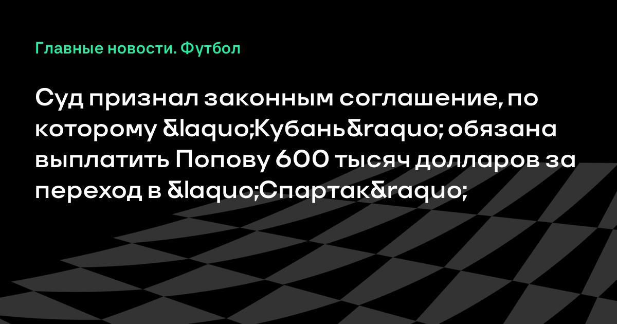 «Кубань» обязана выплатить Попову 600 тысяч долларов за переход в «Спартак» Звучит словно благодарность за то, что свалил.