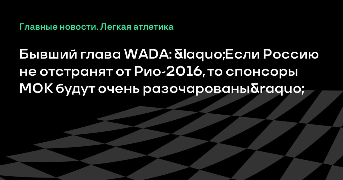 Бывший глава WADA: «Если Россию не отстранят от Рио-2016, то спонсоры МОК будут очень разочарованы»