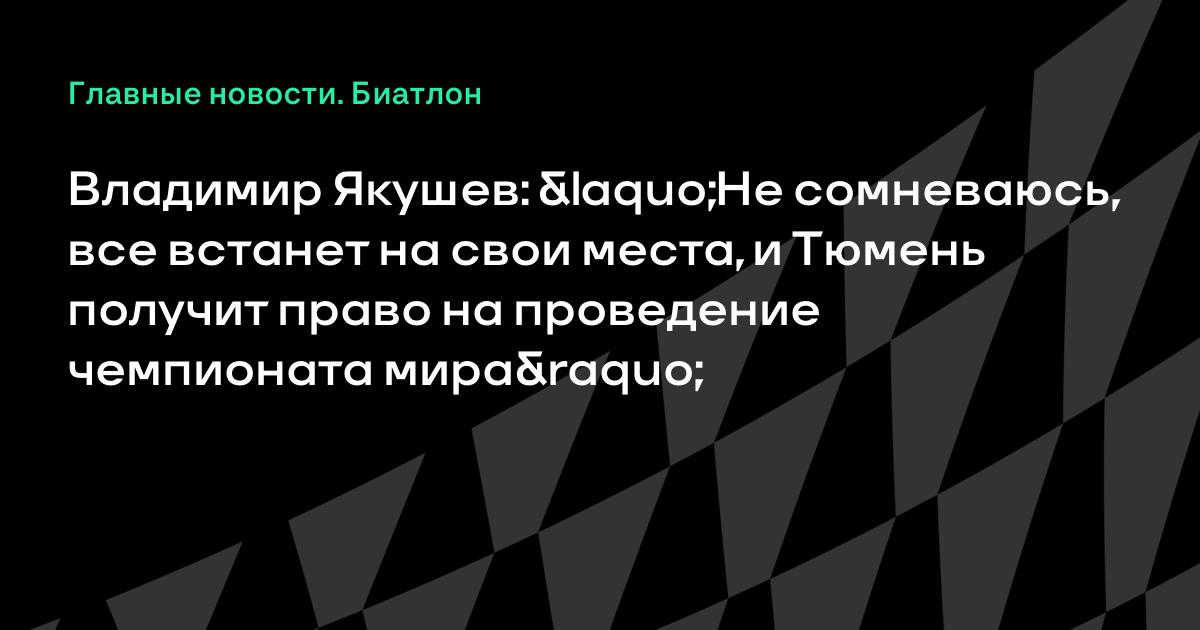 Во-первых, пока еще не принято окончательного решения. Мы будем бороться. Во-вторых, не сомневаюсь, все встанет на свои места, и Тюмень обязательно получит право на проведение чемпионата мира», – рассказал Якушев.