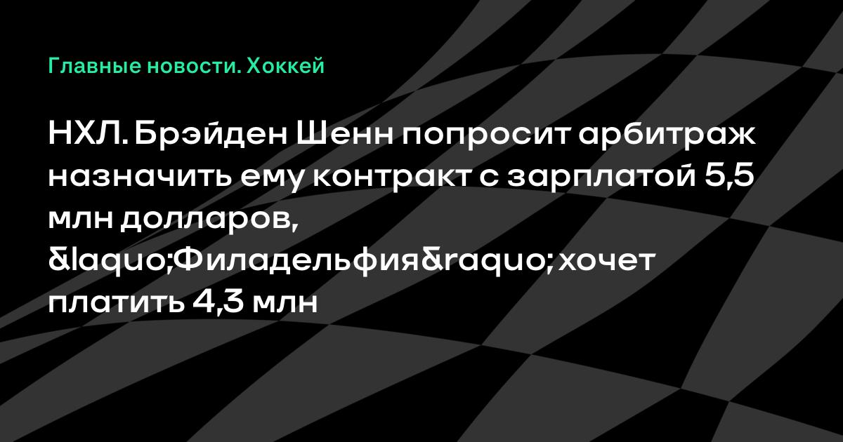 НХЛ. Брэйден Шенн попросит арбитраж назначить ему контракт с зарплатой 5,5 млн долларов, «Филадельфия» хочет платить 4,3 млн