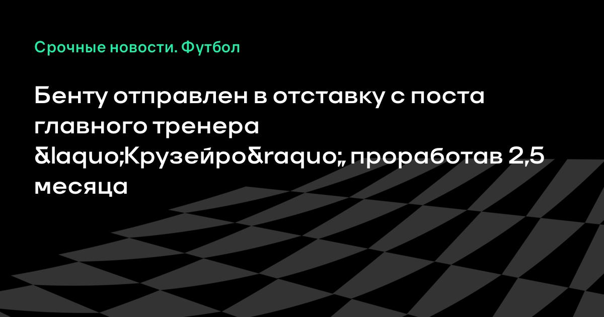 Бенту отправлен в отставку с поста главного тренера «Крузейро», проработав 2,5 месяца