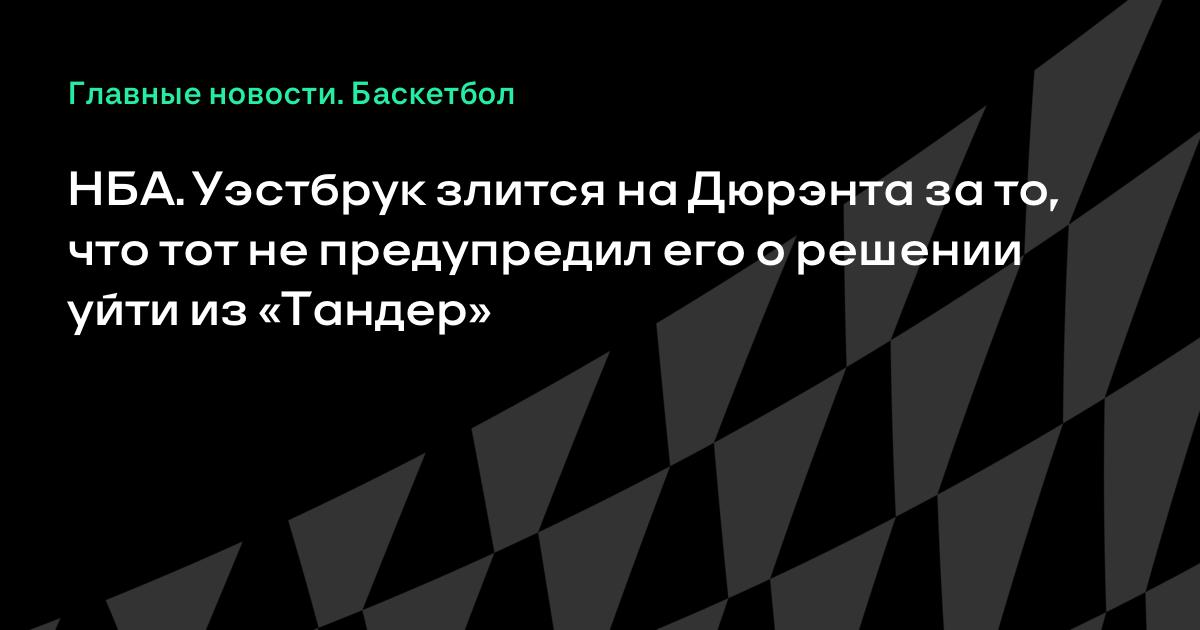 Как пишет ESPN.com, разыгрывающий «Тандер» Расселл Уэстбрук более всего разозлен и расстроен не самим решением Дюрэнта, но тем фактом, что форвард даже не позвонил многолетнему партнеру по команде, дабы рассказать о своих намерениях.