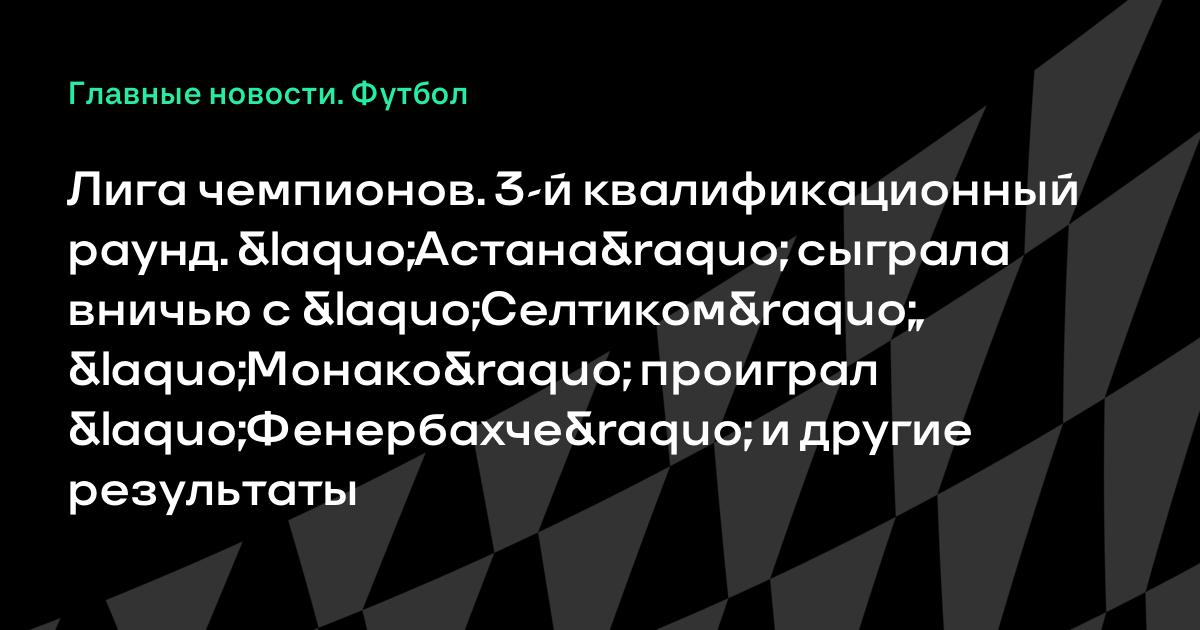 Лига чемпионов. 3-й квалификационный раунд. «Астана» сыграла вничью с «Селтиком», «Монако» проиграл «Фенербахче» и другие результаты