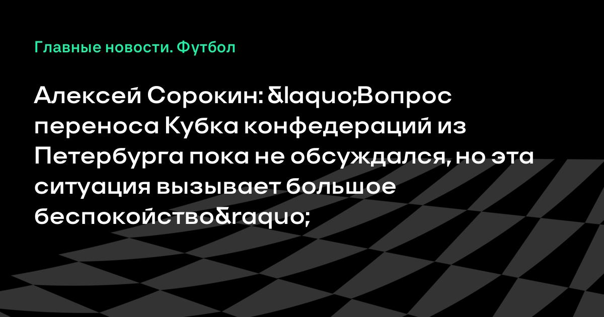 Алексей Сорокин: «Вопрос переноса Кубка конфедераций из Петербурга пока не обсуждался, но эта ситуация вызывает большое беспокойство»