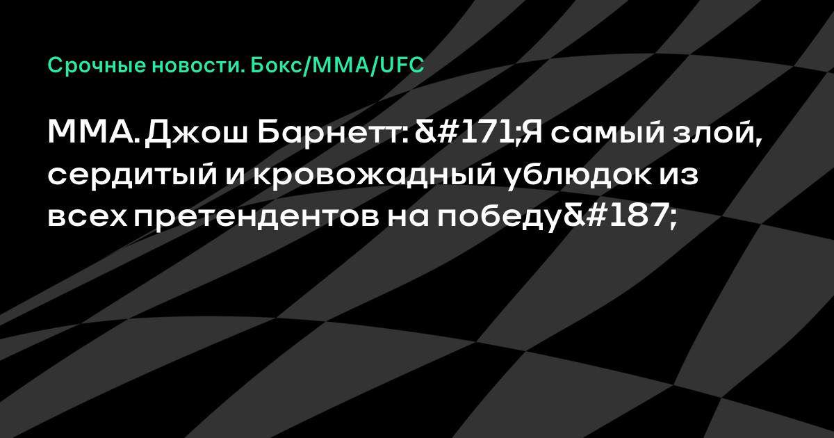 MMA. Джош Барнетт: «Я самый злой, сердитый и кровожадный ублюдок из всех претендентов на победу»
