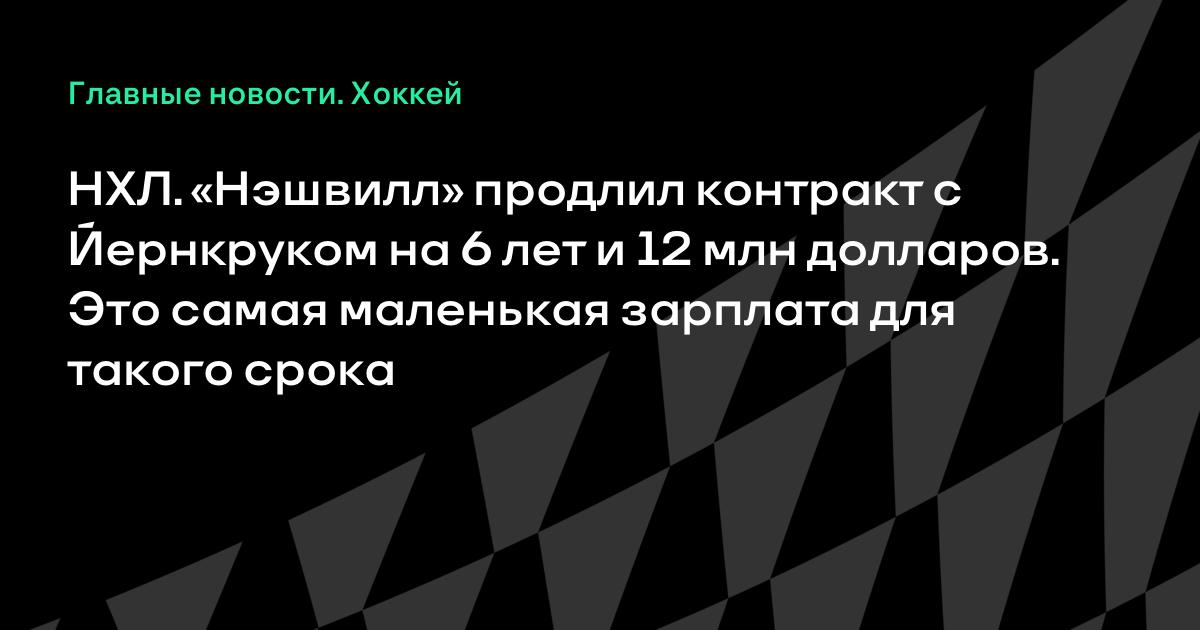 НХЛ. «Нэшвилл» продлил контракт с Йернкруком на 6 лет и 12 млн долларов. Это самая маленькая зарплата для такого срока